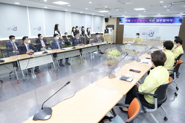[부자동네타임즈 김인수기자] 고양시가 28일(화) 시청 평화누리실에서 명지명원, 자인메디병원, 해븐리병원, 복음병원, 고양휴메디병원과 ‘의료사각지대 및 치매안심마을 어르신 치매감별검사 무료지원 사업 업무 협약식’을 개최했다.