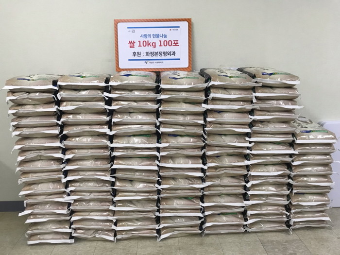 [부자동네타임즈 김인수기자] 고양시 덕양구(구청장 명재성)는 "지난 19일 화정본정형외과(대표 백승욱)에서 취약계층을 위한 쌀(10kg) 100포를 기부했다."고 밝혔다.