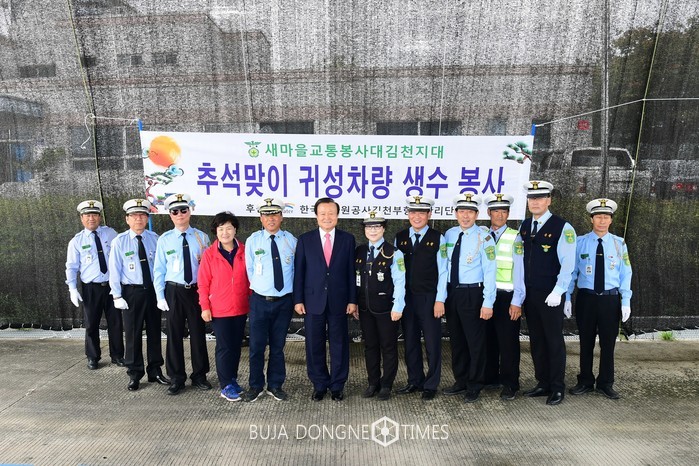 이날 행사에는 박보생 김천시장, 이선명 시의원, 배수향 김천시새마을회장, 김재수 y-smu포럼 회장이 방문하여 한가위 바쁜 일상속에서 시간을 내어 봉사활동을 펼치는 김천시 새마을교통봉사대 대원을 격려하였다.