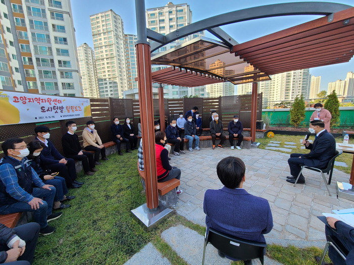 간담회는 고양지역자활센터 옥상공원에 조성된 도시 텃밭에서 개최됐다. 도시 텃밭은 저소득층의 자립을 도울 자활근로 작업 공간과 휴식 공간을 위해 450㎡ 규모로 조성됐다. 시는 도시텃밭 전문가와 함께 작물 재배, 원예 치유 프로그램을 운영하여 저소득 취약 주민의 자립을 지원하고 있다.