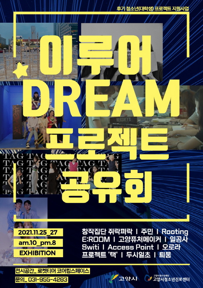 이루어Dream사업은 고양시청소년재단 진로센터에서 고양시 후기 청소년들을 대상으로 꿈·도전·성장과 관련된 프로젝트 활동 주제를 지원하는 사업으로 올해 12개의 팀이 선정되어 8개월간 프로젝트를 진행하였다. 참가팀은 프로젝트 공유회와 최종 발표를 통해 진행 과정과 결과를 평가 받는다.