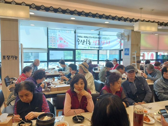 행사를 주관한 김영희 중산1동 새마을부녀회장은 “그동안 코로나19로 어르신들을 뵙기가 어려웠는데 이렇게 다시 경로잔치를 통해 어르신들과 좋은 시간을 보내 너무 기쁘다”고 말했다.