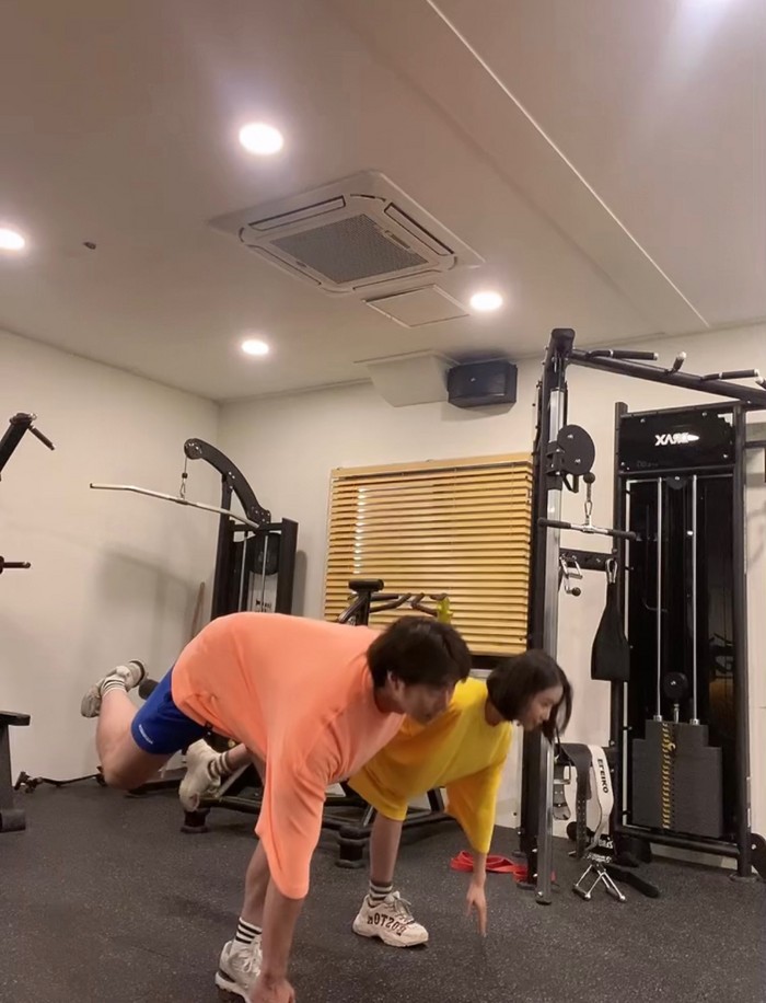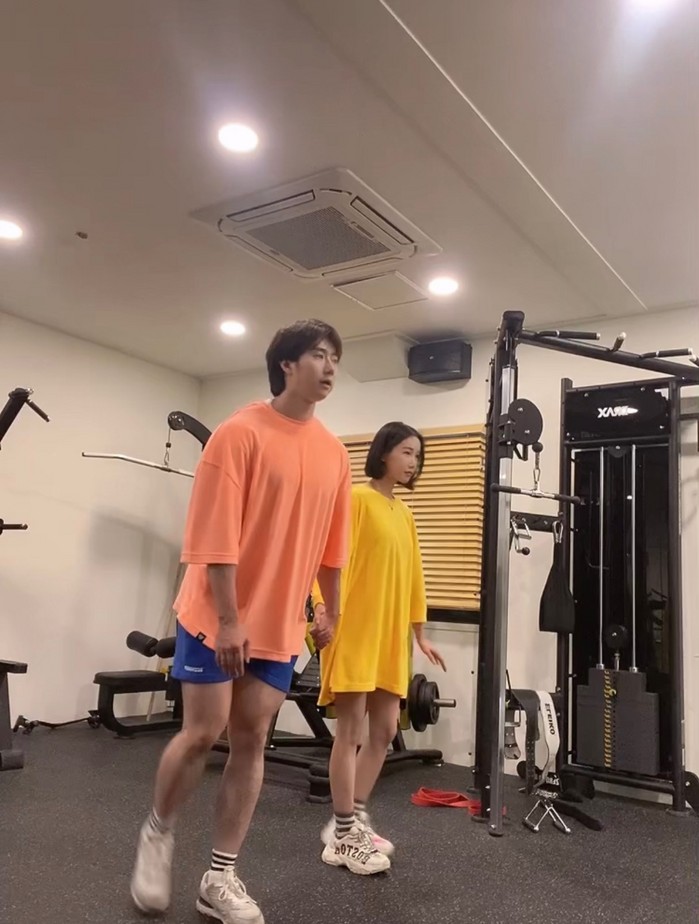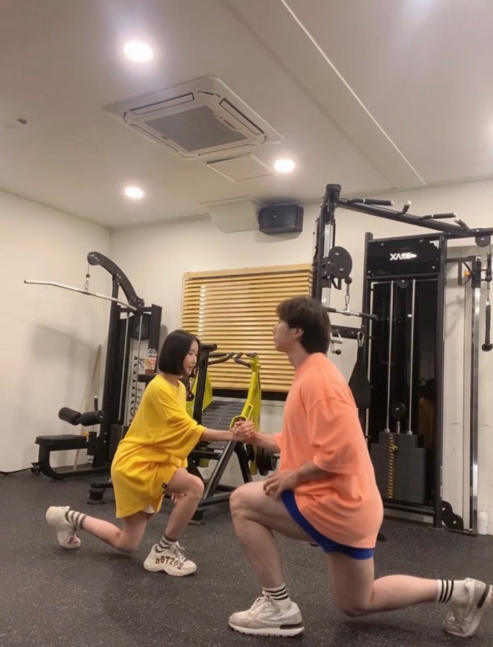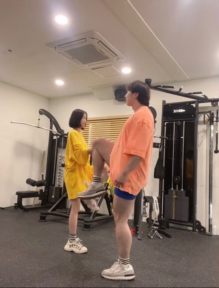 [사진 설명] 트레이너 김태양과 모델 이다운이 동작을 선보이고 있다.