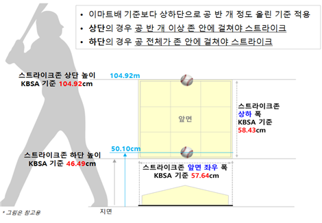 KBSA 심판진이 참석하여 다양한 스트라이크 존 설정 방안을 고교야구 주말리그 경기에 대입한 결과, 기존보다 상하단을 공 반개 가량 올리게 되었고, 하단의 경우, 공 전체가 존 안에 들어와야 스트라이크로 판정될 수 있도록 조치해 낮은 공에 대한 스트라이크 판정의 괴리감을 줄이고자 노력했다.