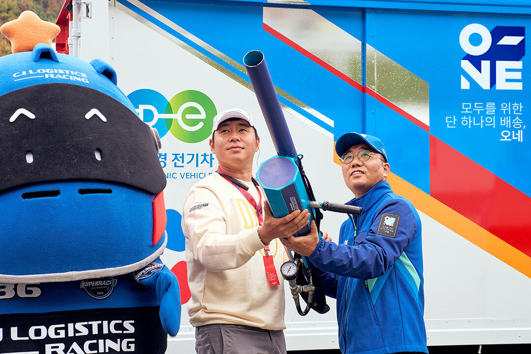 레이스를 마친 뒤 택배차량에서는 CJ대한통운 강신호 대표가 깜짝 등장했다. 강 대표는 슬리퍼·안대·보조배터리·비치타올·쿨링백으로 구성된 CJ대한통운 오네 굿즈 5종 세트를 개틀링 건으로 발사, 이를 받은 관객들에게 즐거움을 선사했다. 강 대표는 “슈퍼레이스 최종전을 찾아주신 관객분들께 감사드리며, 앞으로 더 많은 즐길거리와 볼거리를 제공해 모터스포츠가 더욱 대중화될 수 있도록 노력하겠다”면서 “CJ대한통운 오네(O-NE) 역시 여러분의 편리하고 즐거운 일상을 함께 만드는 친근한 브랜드로 다가가겠다”고 말했다.