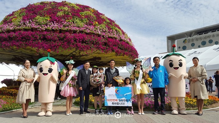 이 날 엑스포장을 찾은 100만 번째 입장관람객의 영광은 금산군 제원면에 거주하는 다문화가족인 김달호(남)씨 가족에게 돌아갔다.