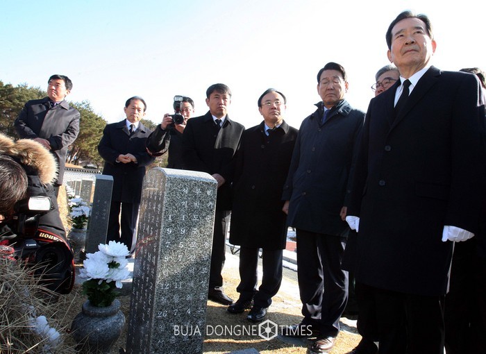 24일 오전 광주 북구 운정동 국립 5·18민주묘지를 방문한 정세균 국회의장(오른쪽)이 묘역을 바라보고 있다. 2017.01.24.