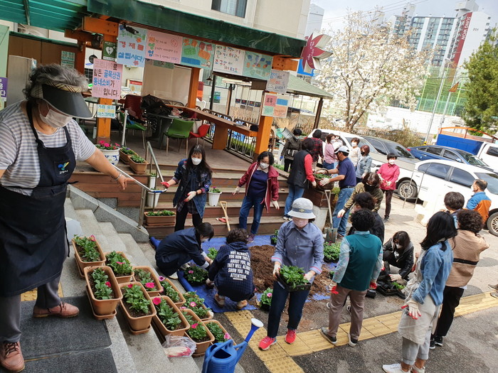 이날 식재 행사는 겨우내 추위와 코로나19로 움츠렸던 시민들의 마음을 위로하고 봄맞이 풍산동 주변 환경개선을 목적으로 통장협의회 및 직능단체와 함께 실시하였다.