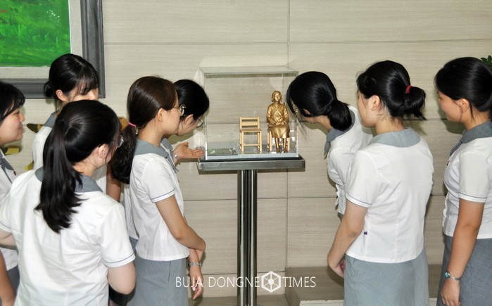 담당교사는 "학생들은 학교에 작은 소녀상을 세우는 과정 속에서 우리나라의 아픈 역사를 되돌아 봤다"며 "직접 세운 소녀상을 보면서 앞으로 만들어 갈 우리 역사에 대해 책임의식도 갖게 됐다"고 밝혔다.