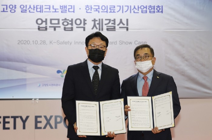 업무협약서에는 고양시에 본사를 둔 의료기기분야 벤처기업육성, 고양 일산테크노밸리 기업유치 협력, 한국의료기기산업협회의 추천기업 지원을 위한 협력, 국내·외 의료기기 산업에 대한 정보 및 네트워크 공유 등을 위해 상호 협력한다는 내용이 담겼다.