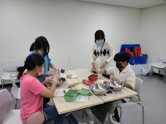 [사진설명] 고양 희망-내일 공공일자리사업 참여자가 요리 동아리 활동을 지도하고 있다.