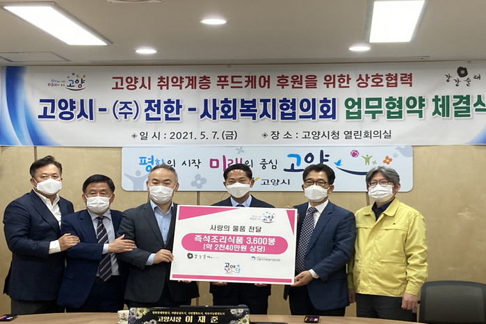 [부자동네타임즈 김인수기자] 고양시는 ㈜전한, 사회복지협의회와 관내 취약계층 푸드케어 후원을 위해 지난 7일 업무협약을 체결했다.