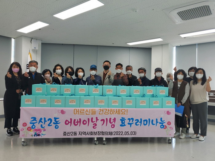 남기준 중산2동장은 “효꾸러미 전달을 통해 외롭게 생활하는 독거 어르신들의 안부를 살피고 소통하여, 도움이 필요한 어르신들에게 필요한 복지 지원을 하여 복지사각지대를 해소하는 중산2동이 되도록 노력하겠다”고 밝혔다.