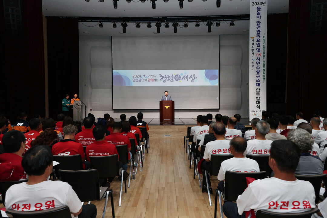 군은 17일 음악역1939 1층 대강당에서 가평소방서와 함께 ‘2024년 물놀이 안전관리요원 및 119시민수상구조대 합동발대식’을 개최했다고 밝혔다.