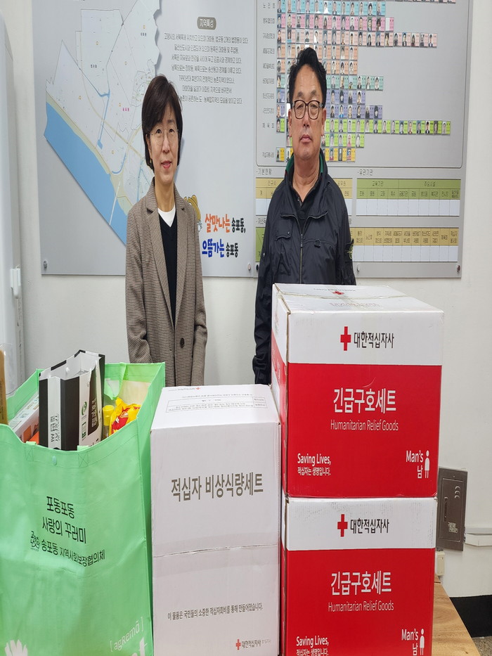 [부자동네타임즈 김인수기자] 고양특례시 송포동 지역사회보장협의체와 송포동 적십자봉사단은 지난 4월 10일 동 행정복지센터에서 관내 화재를 입은 가구에 사랑의 꾸러미와 긴급구호물품을 각각 전달했다.