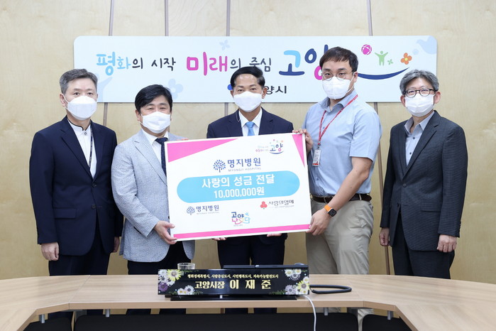 [부자동네타임즈 김인수기자] 고양시는 지난 13일 명지병원(고양시 덕양구 화정동 소재)이 추석명절 소외계층 지원을 위한 성금 1천만원을 기부해 전달식을 개최했다.