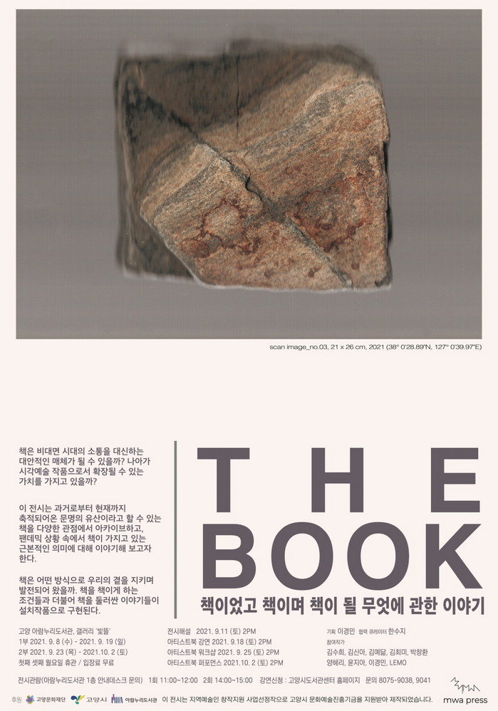 [부자동네타임즈 김인수기자] 고양시 아람누리도서관은 고양문화재단 후원을 받은 지역 예술가 연계 전시 ‘책이었고 책이며 책이 될 무엇에 관한 이야기’를 9월 8일부터 10월 2일까지 진행한다.