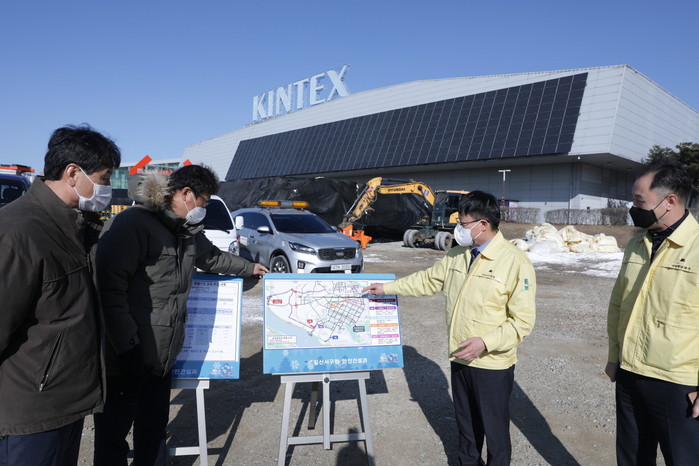 이 구청장은 먼저, 제설장비 전진기지를 방문해 설해 대책 추진 상황과 사전 대비태세를 점검하고 폭설이나 한파에 대한 선제적 대응 체계 구축을 당부했고, 일산역 코로나19 임시 선별검사소를 방문해 시민의 안전을 위해 근무하는 직원 및 관계자들을 만나 노고 격려와 불편사항은 없는지 꼼꼼히 둘러봤다.