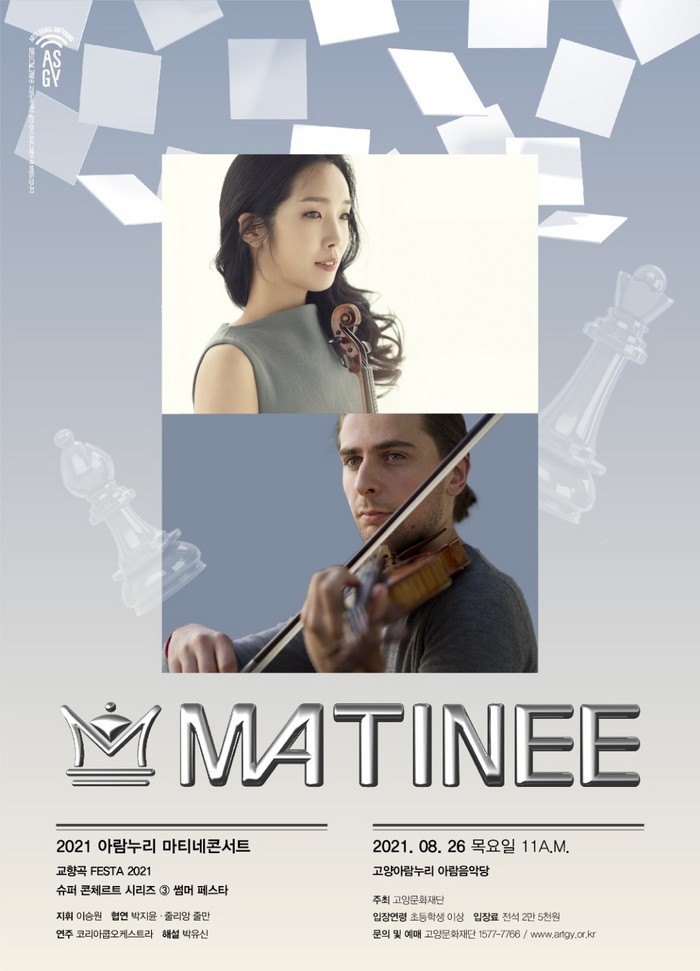 [부자동네타임즈 김인수기자] 고양문화재단(대표이사 정재왈)은 2021 아람누리 마티네 콘서트 시리즈의 세 번째 무대 썸머 페스타를 오는 8월 26일(목) 오전 11시, 고양아람누리 아람음악당에서 선보인다. 평일 오전 정통 클래식 프로그램으로 매년 많은 사랑을 받고 있는 아람누리 마티네 콘서트는 올해 총 5회 예정되어 있으며, 브람스, 베토벤 등 매회 선정된 거장 작곡가의 교향곡 페스타로 마련된다.