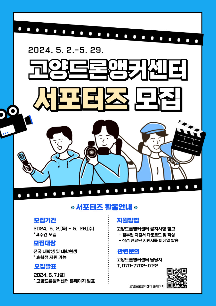최종 선발된 고양드론앵커센터 서포터즈는 6월부터 12월까지 6개월간 고양드론앵커센터와 드론에 관한 다양한 소식을 소셜미디어를 통해 알리는 활동을 하게 된다.