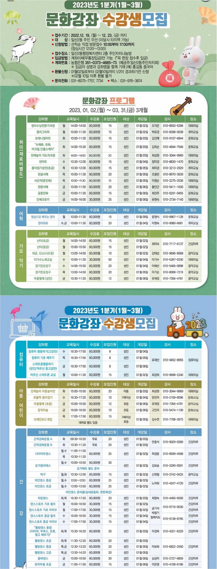 [부자동네타임즈 김인수기자] 고양특례시 일산2동 주민자치센터에서 2023년 1월부터 3월까지 운영하는 1분기 문화강좌 수강생을 모집한다.