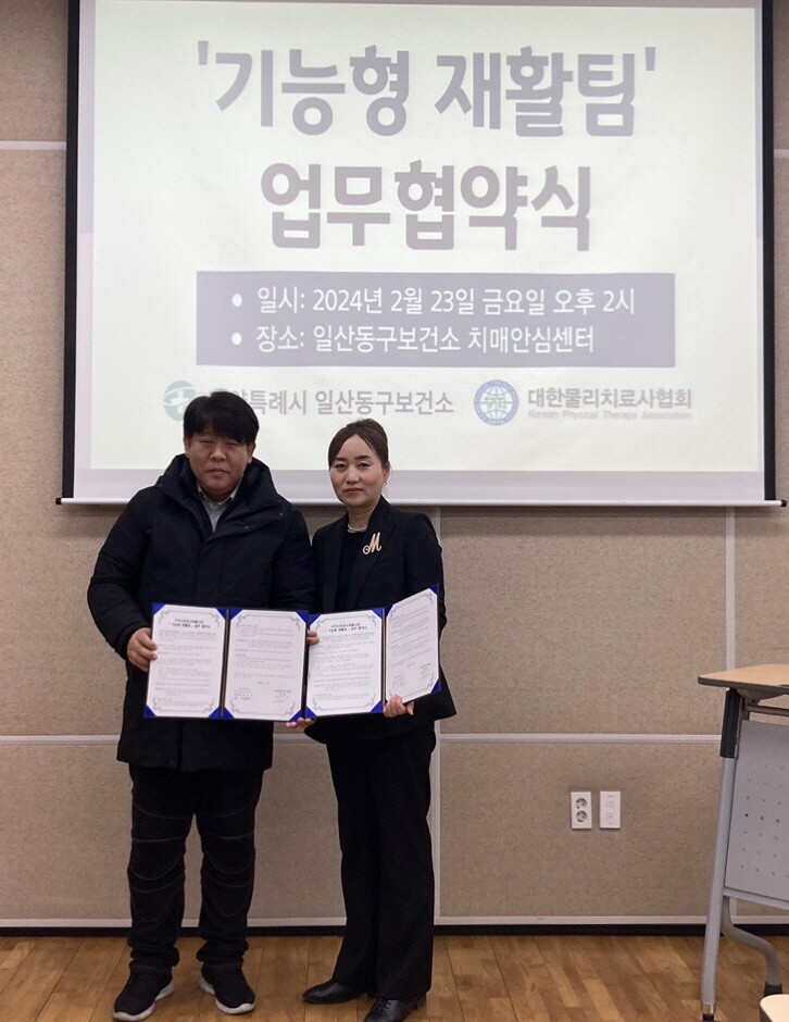 [부자동네타임즈 = 김인수 기자] 고양특례시 일산동구보건소는 지난 23일 대한물리치료사협회 경기도회와 ‘지역사회 재가 장애인의 건강증진을 위한 기능형 재활팀 업무협약’을 체결했다.