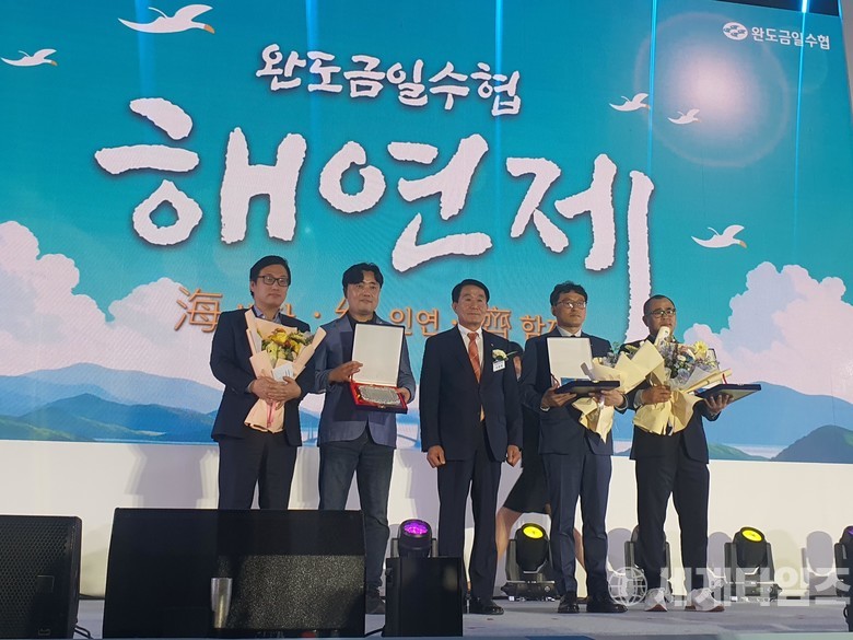 | ▲ 완도금일수협 ;해연제‘ 행사 수상자 기념촬영하고 있다 © 사진= 신정문 기자 |
