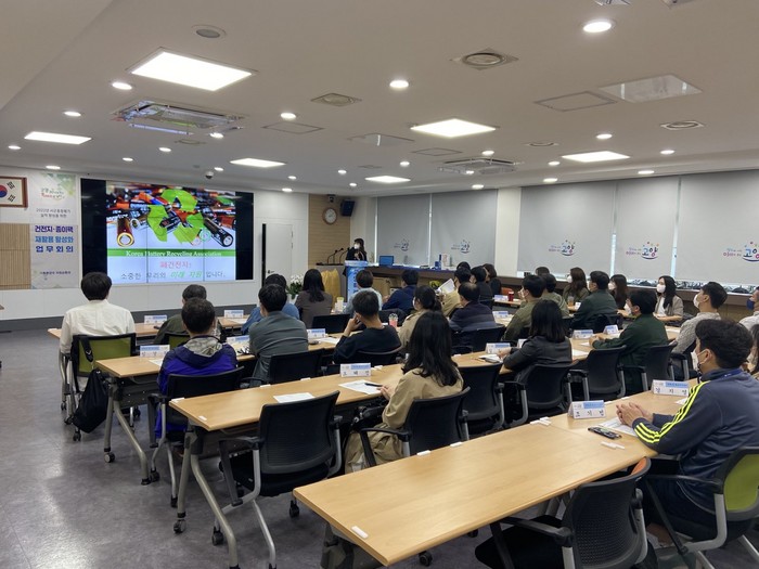이날 구청 및 동 행정복지센터 담당자 협조사항 전달 및 건의사항 수렴이 진행됐다. 또한 (사)한국전지재활용협회 이시정 사무국장과 2022년 찾아가는 쓰레기 줄이기 교육 강사의 폐건전지와 종이팩의 수거 목적을 알리는 강의도 실시됐다.