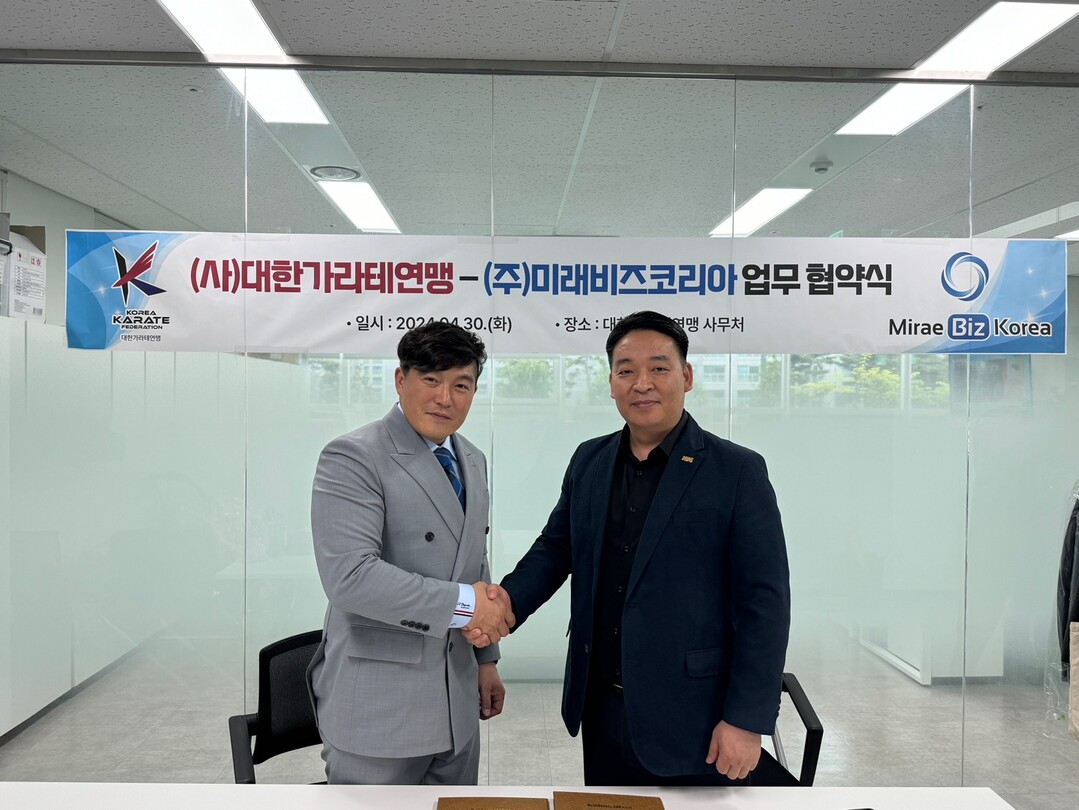 연맹 박용성 상임부회장은 “국내 가라테 저변 확대를 위한 여러 지원 등 다양한 방면에서 ㈜미래비즈코리아와 실질적인 많은 협업이 이뤄지길 기대한다.” 고 말했다.