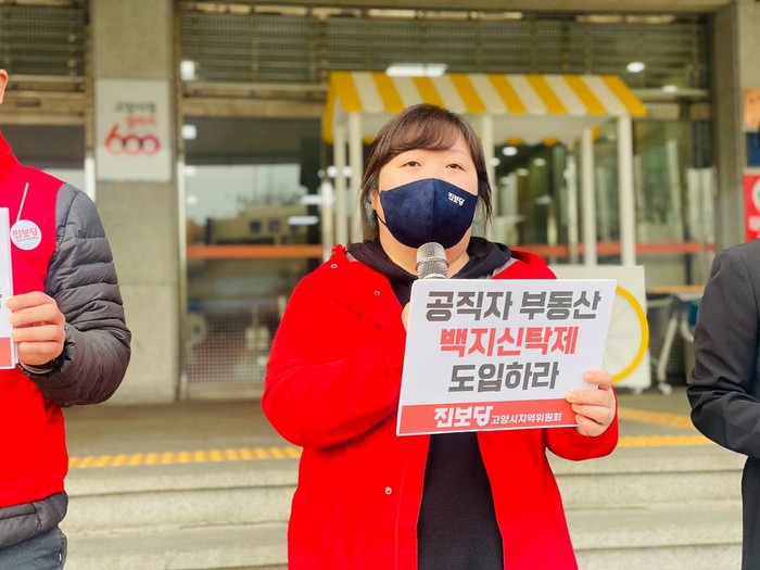 [부자동네타임즈 김인수기자] 진보당 고양시지역위원회(위원장 송영주)는 3월 12일 고양시청 본관 앞에서 'LH직원의 창릉신도시에 대한 부동산 투기 규탄 및 고양시 공직자 전원 부동산 전수조사 촉구‘기자회견을 진행했다.