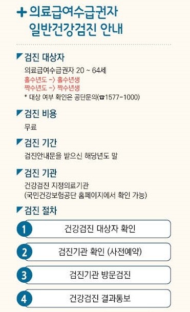 의료급여 수급권자 일반건강검진은 고혈압, 당뇨병 등 심뇌혈관질환을 조기 발견해 치료와 관리로 연계하기 위한 사업이다.