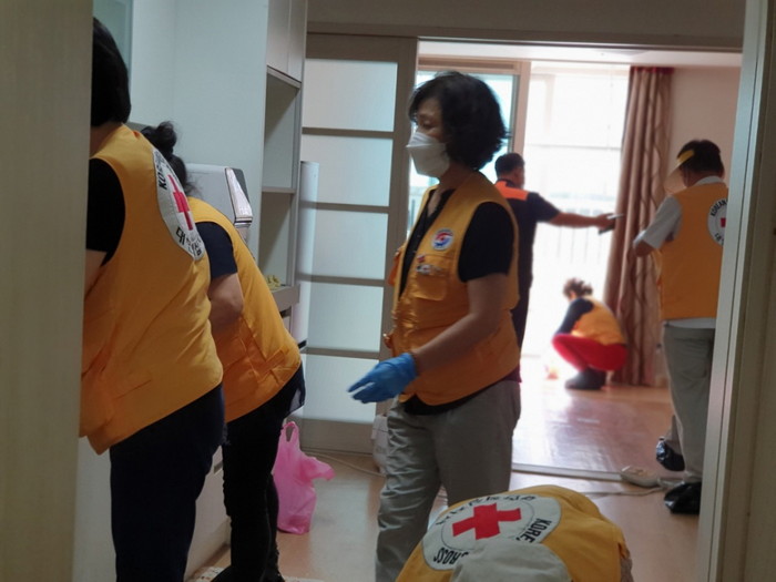 이번에 실시한 주거환경 개선은 삼송마을 18단지 관리사무소의 도움을 받아 삼송적십자봉사회(일명 ‘노란천사’)와 함께 진행했다. 우선 집안에 기생하고 있는 각종 곤충을 제거하기 위해 2주 전부터 해충 방역을 실시하고 각종 병해충의 잔해를 청소했다. 또한 노란천사 회원 10여 명은 3시간 동안 집안 구석구석을 청소하고 맑힌 하수구를 뚫는 등 집안 정리정돈에 구슬땀을 흘렸다.