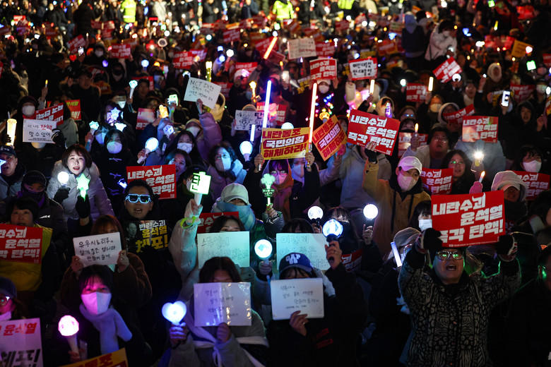10일 오후 서울 영등포구 국회 앞에서 윤석열 대통령 탄핵을 촉구하는 촛불집회가 열리고 있다. 2024.12.10