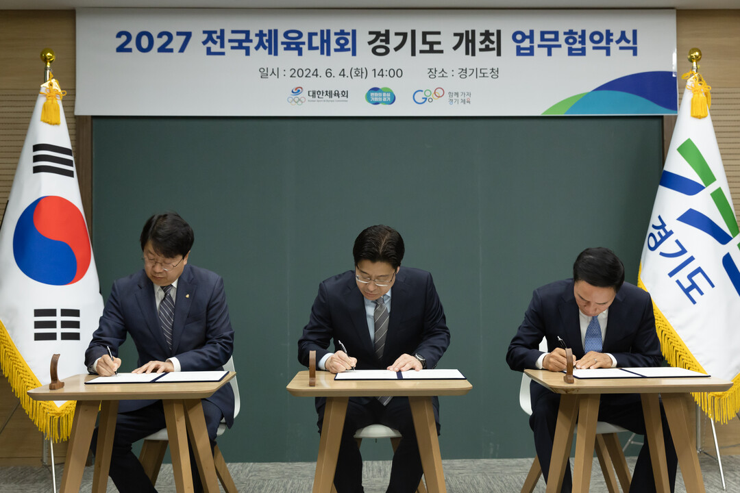 이날 업무협약식은 오후 2시 경기도청에서 윤성욱 대한체육회 사무총장, 오병권 경기도 행정1부지사, 이원성 경기도체육회장 등이 참석한 가운데 진행되었으며, 대한체육회와 경기도, 경기도체육회는 전국종합체육대회의 원활한 개최를 위해 공동 협력을 약속했다.