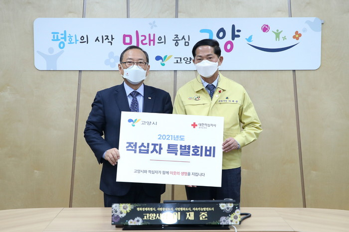 [부자동네타임즈 김인수기자] 고양시가 지난 22일 대한적십자사 경기도지사에 2021년도 적십자 특별회비를 전달했다.