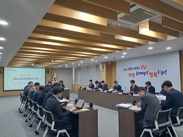 - 4월 중앙부처 신청... 8월 정부안·연말 국회까지 총력전 [부자동네타임즈=강영옥 기자] 경상남도(도지사 박완수)는 9일 도청 도정회의실에서 ‘2027년도 국비 신규사업 발굴 보고회’를 열고 본격적인 국비예산 확보 활동에 착수했다. 이날 보고회에는 박일웅 행정부지사와 김명주 경제부지사를 비롯해 전 실국본부장이 참석해 신규 발굴 사업과 대응 전략을 점검했다.