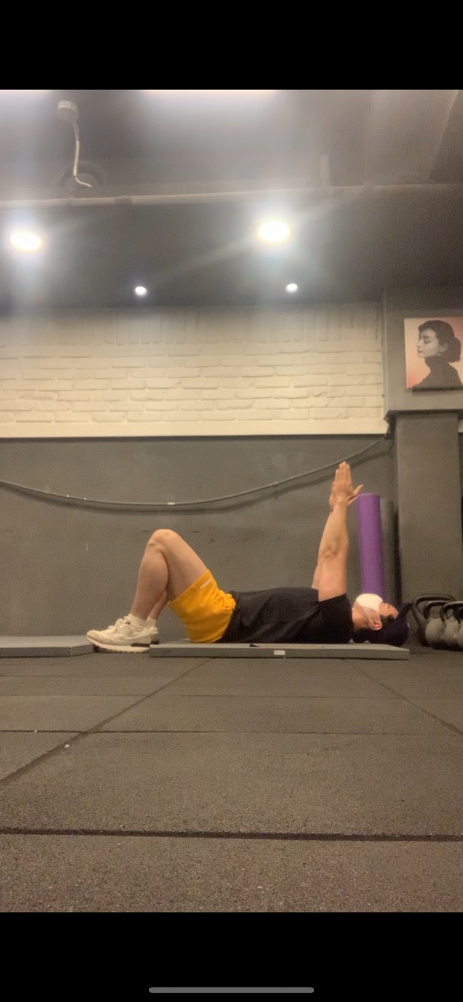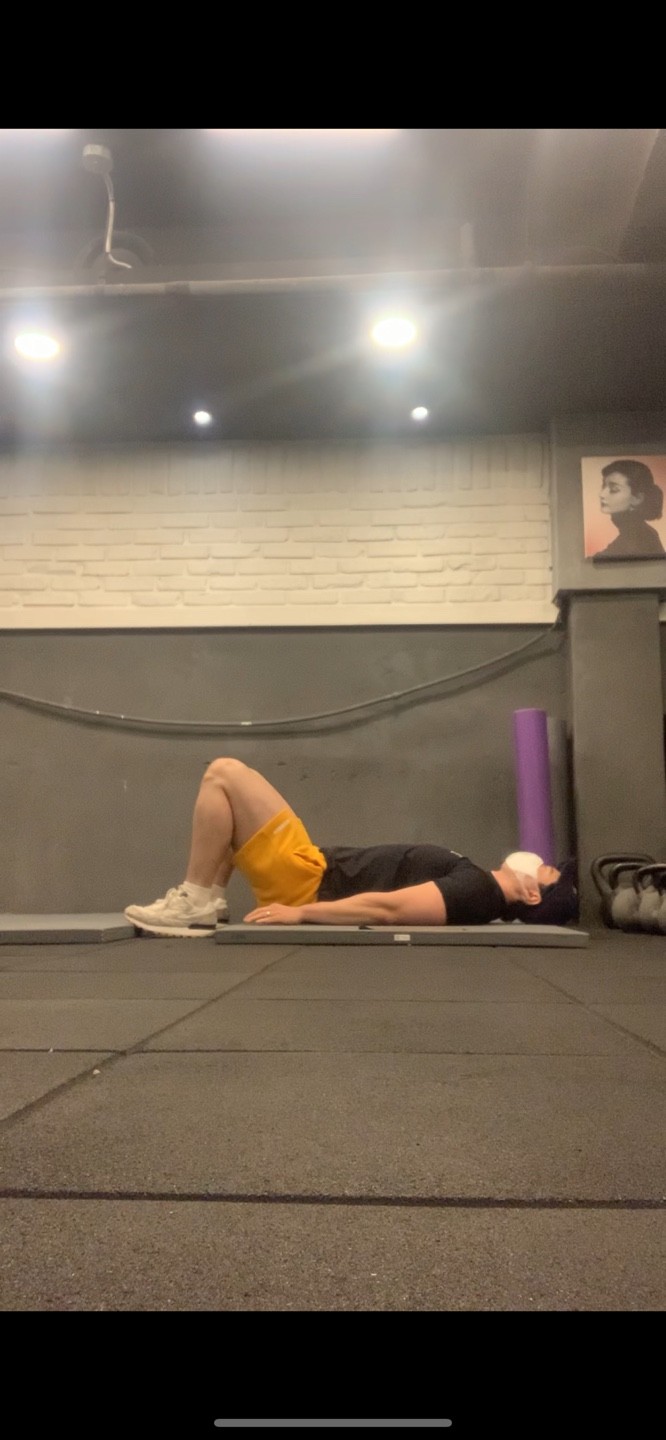 엉덩이를 올려주며 호흡을 내뱉는다.