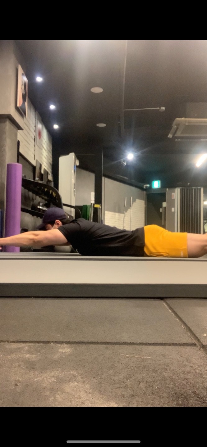 상체를 세우며 팔꿈치를 옆구리에 닿는다고 상상하며 당겨준다.