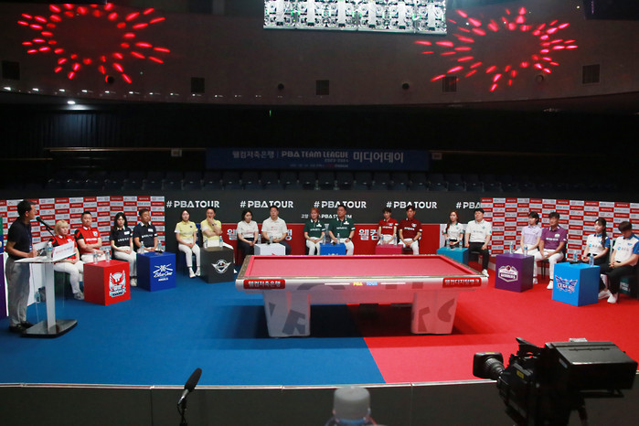 [사진설명] PBA 팀리그 2023-24시즌 미디어테이에 참석한 각팀 선수단.