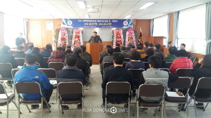 [부자동네타임즈 백수연 기자]합천군 쌍백면체육회(명예회장 쌍백면장 박종선, 전임회장 김진택)는 지난 24일 면사무소 회의실에서 체육회 임원 및 유관기관장, 사회단체장 등 70여 명이 참여한 가운데 2017년 쌍백면 체육회 정기총회 및 회장 이·취임식을 가졌다.