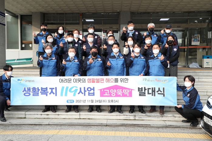 ‘고양 뚝딱’은 지난 11월 고양시사회적기업봉사회, 고양시자활기업협의회, 고양지역자활센터와 업무 협약을 맺고 발대식을 가졌다. 소규모 생활 정비는 고양지역자활센터가 참여하는 생활복지119 전담반이 담당하고, 기술력이 필요한 서비스는 관내 사회적·자활 기업에서 제공한다.