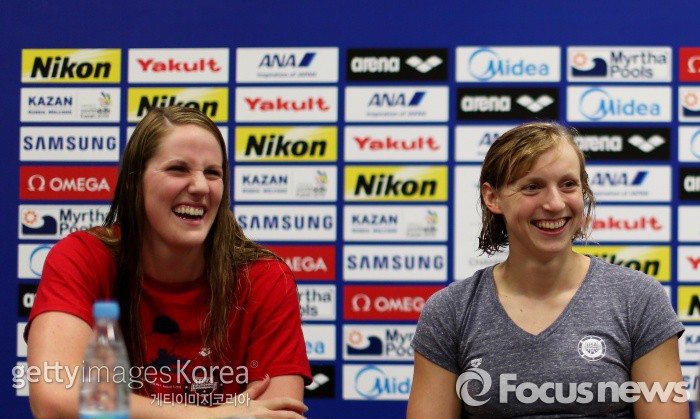 | △ 지난 7월 31일 러시아 카잔에서 열린 세계 수영대회 기자회견에서 활짝 웃는 미국 선수들. 행복은 장수와 무관하다는 새 연구결과가 나왔다. (Photo by Streeter Lecka/Getty Images) ⓒ게티이미지/멀티비츠 photo@focus.kr |