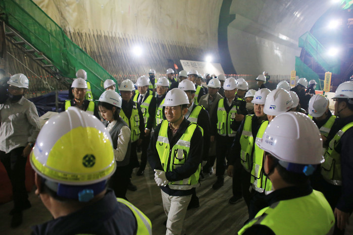 [사진설명] [사진설명] 원희룡 국토교통부장관이 일산신도시를 방문해 이동환 고양특례시장과 함께 GTX-A 킨텍스역 공사현장을 점검했다.