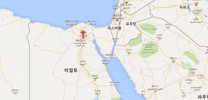 | △ 이집트의 수도 카이로(빨간점) 중심가에 위치한 식당에서 화염병이 폭발해 최소 12명이 숨지는 사고가 발생했다. <사진출처=구글맵> |