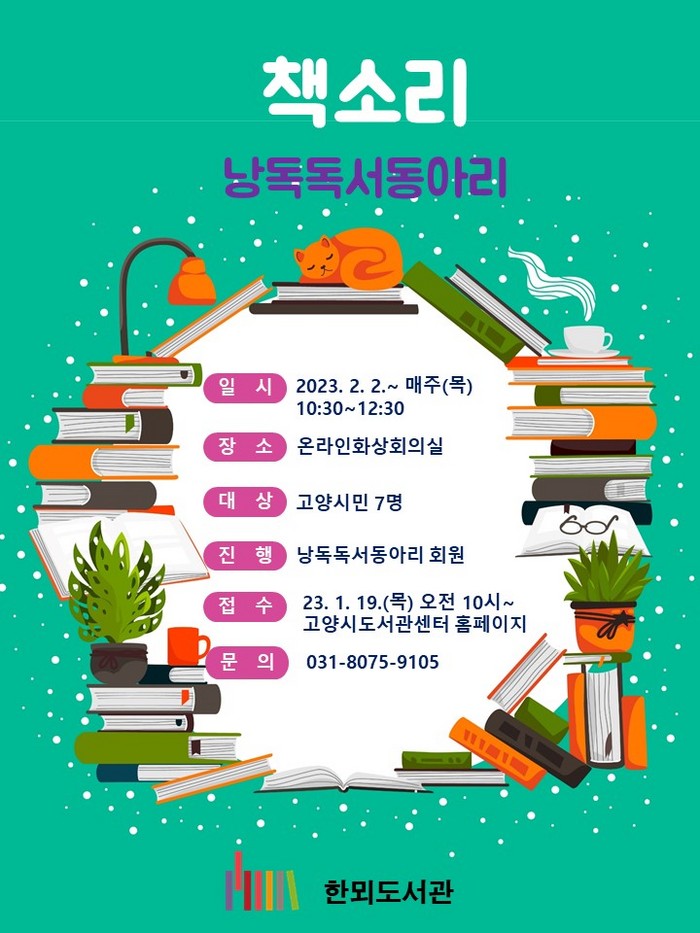 참여 신청은 1월 19일(목) 오전 10시부터 고양시도서관 홈페이지를 통해 가능하다. 더 자세한 사항은 한뫼도서관(☎031-8075-9105)로 문의하면 된다.