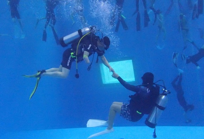 그리고 아시아 최대 수심으로 유명한 경기도 가평 소재 K-26 잠수풀에서 풀장실습이 이어졌다. 11월 18~19일 이틀 동안 호흡법, 호흡기 안에 침투한 물 제거, 중성 부력 맞추기, 핀킥 등 본격적인 스쿠버다이빙 교육을 시행했다.