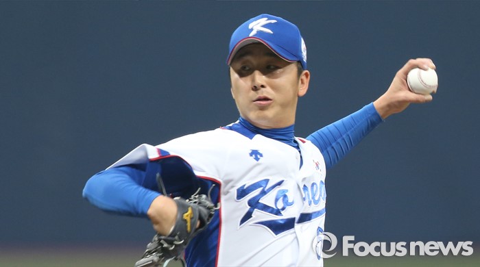 | △ 지난 4일 오후 서울 구로구 고척스카이돔에서 열린 2015 서울 슈퍼시리즈 대한민국과 쿠바의 경기 8회초에서 대한민국 정우람이 역투하고 있다. <사진제공=포커스뉴스> |