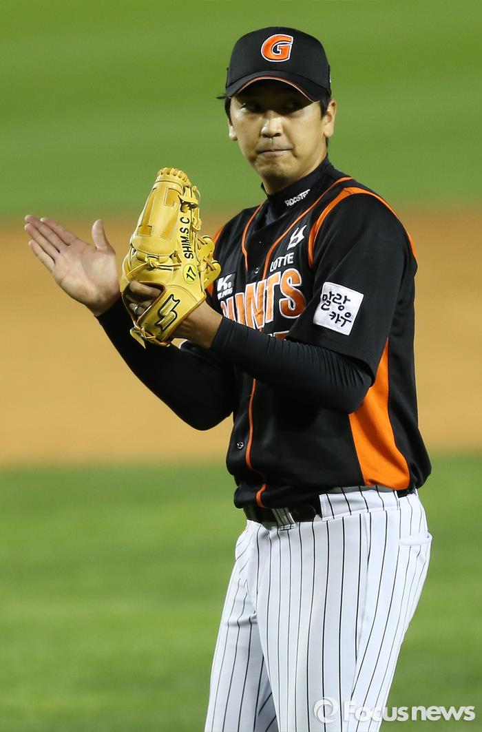 | △ 지난 9월 16일 잠실구장에서 열린 2015 프로야구 롯데-두산 경기, 롯데 심수창이 12회말 두산 타선을 삼자범퇴로 돌려세운 후 박수치고 있다. <사진제공=포커스뉴스> |