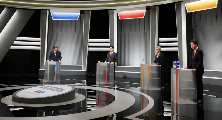 더불어민주당 이재명·국민의힘 김문수·민주노동당 권영국·개혁신당 이준석 대선후보가 23일 서울 영등포구 여의도 KBS 스튜디오에서 열린 제21대 대선 2차 후보자 토론회를 준비하고 있다. 2025.5.23 [국회사진기자단]