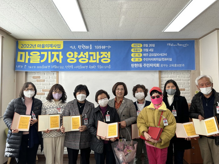 조경순 탄현1동 주민자치회장은 “마을기자 양성과정에 참여해주신 탄현1동 명예 마을기자들께 감사하고 축하드린다”며“이번 탄현1동 4분기 마을신문인‘ 숯향기마을 29호’가 기대된다.”고 말했다.